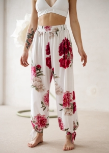 Luźne spodnie do tańca lub do praktyki jogi w kwiatowy wzór FLOWERS